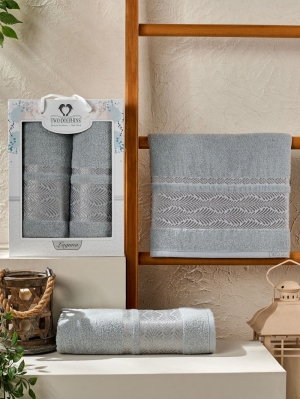Главная -> Каталог -> Турецкие полотенца оптом -> Наборы полотенец в подарочной упаковке -> Турецкий комплект полотенец махровых TWO DOLPHINS LAGUNA 2шт арт.11822